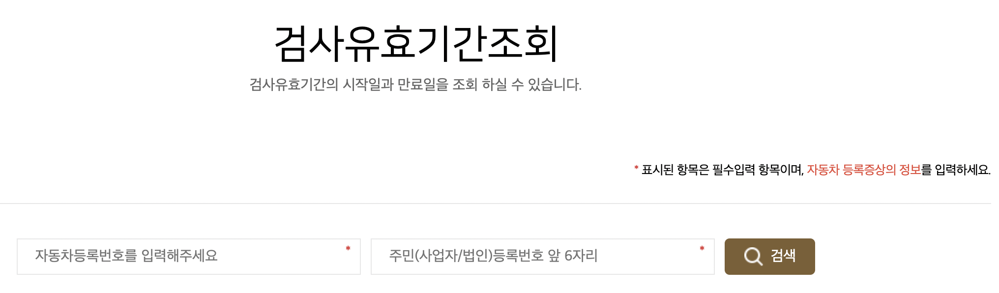 접속을 하시면 다른 것 필요 없이 바로 '검사유효기간조회' 화면으로 연결이 됩니다.
