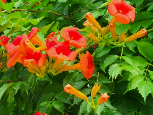 능소화는 우리나라 전역에서 볼 수 있는 덩굴나무이며, 주황색의 꽃이 예쁘게 피기 때문에 능소화가 가득한 벽 앞에서 멋진 사진을 찍기 좋습니다.